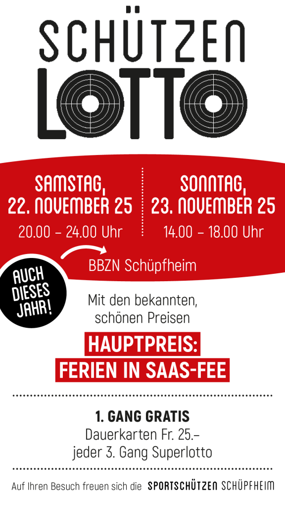 17.10.15 – Schon bald findet wieder unser Schützenlotto statt! Auch dieses Jahr wird dieses im BBZN stattfinden! Jetzt schon dick im Kalender eintragen!